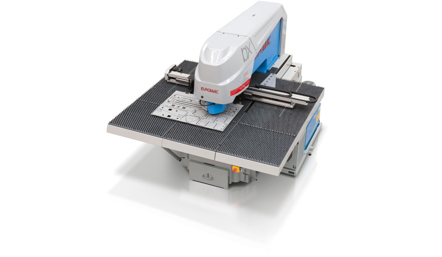 Euromac BX Plus AutoIndex 1250/30-2500 on koordinaat-läbistuspink automaatse AutoIndex tööriista pööramissüsteemiga, mis tagab kuni 300 kN mulgustusjõu ja 2500 × 1250 mm tööala.